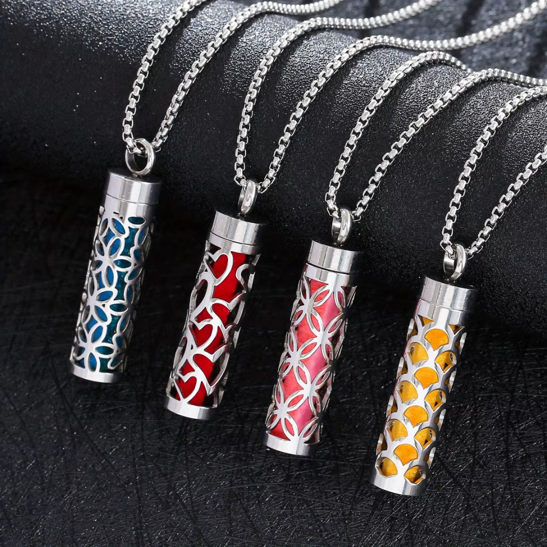 The Fentiscent Necklace is designed with a compartment that securely holds a scent stick. Simply apply a few drops of your chosen fragrance to the scent stick, insert it into the pendant, and close the compartment. The scent stick slowly releases the fragrance, allowing you to carry a personalized scent with you all day.